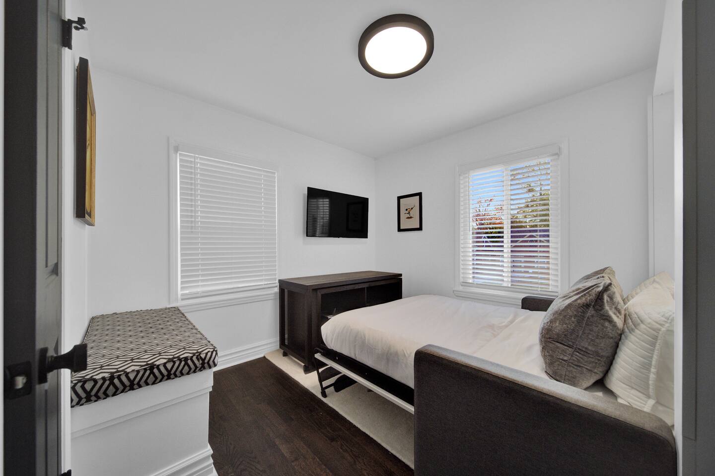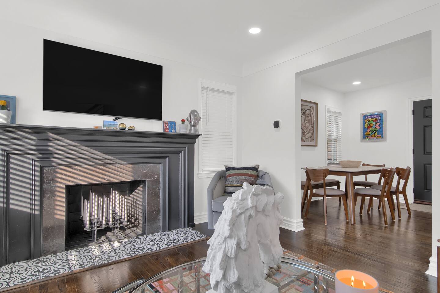 Art House Detroit boasts a private backyard—your perfect oasis for unwinding after a thrilling day. Dive into our cozy media lounge, featuring TV, record player, and records. You can immerse yourself in captivating artwork while enjoying your favorite tunes. Get ready for a creative escape! We’re a brief 13-minute drive from the vibrant downtown Detroit epicenter of the city's most exciting attractions, and only 20 minutes from Troy, MI. Feel the pulse of city life as you dive into its lively atmosphere, or take a leisurely walk down the historic Livernois Avenue of Fashion, where you can discover a rich tapestry of culture and style. After a day filled with exploration and adventure, retreat to your curated artistic oasis. Discover the art of stay at Art House Detroit!