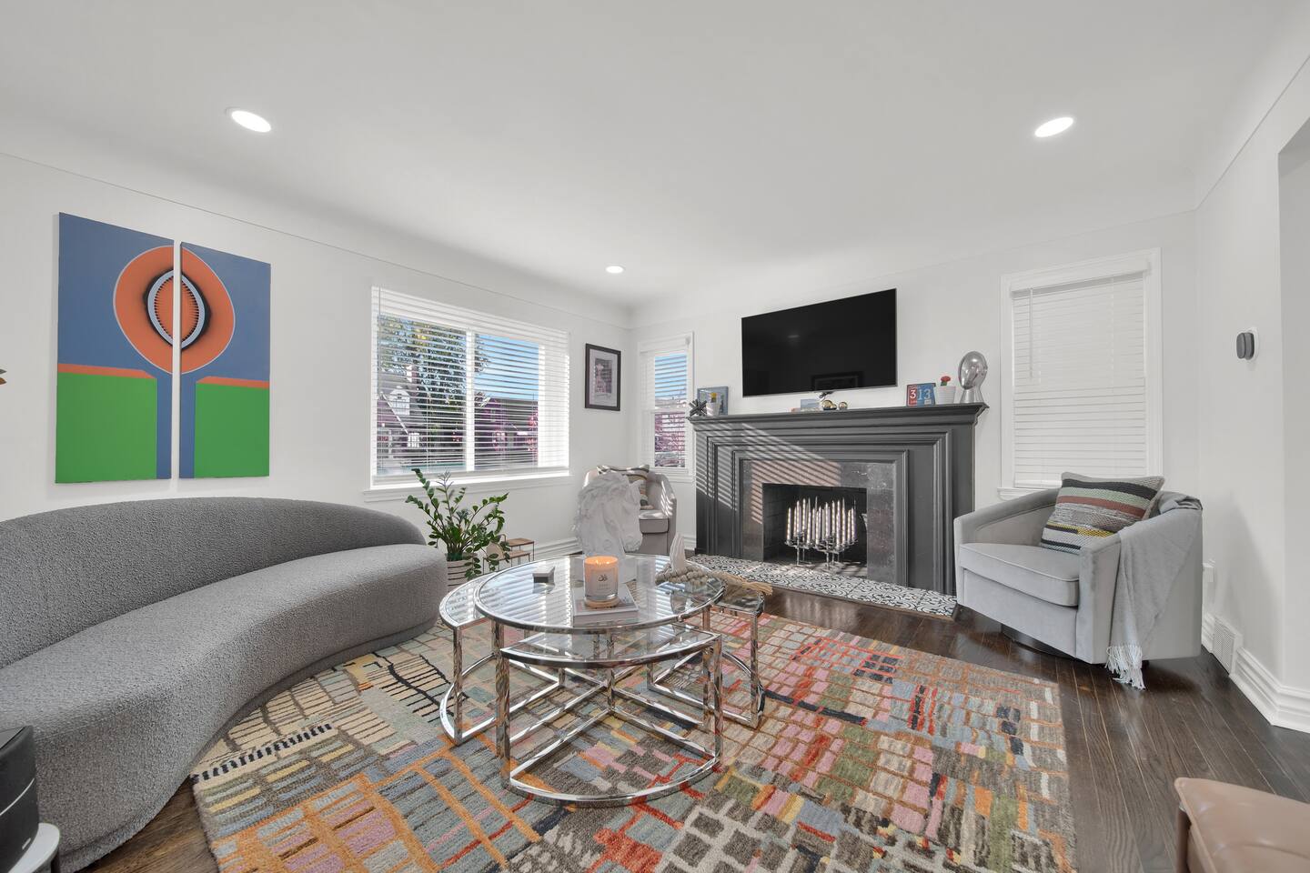 Welcome to Art House Detroit! Our beautifully restored 1940s colonial-style home features chic decor and stunning artwork throughout the space. Immerse yourself in a vibrant atmosphere that inspires creativity at every turn. Experience the cozy charm of the Art House, where captivating artwork surrounds you, igniting your imagination and elevating your visit to new heights. Fully Equipped Kitchen Dining Area: Seats 6 Sleeps: 6 people 3 Bedrooms: BR1: King, BR2: Queen BR3: Full Bathrooms: 1.5